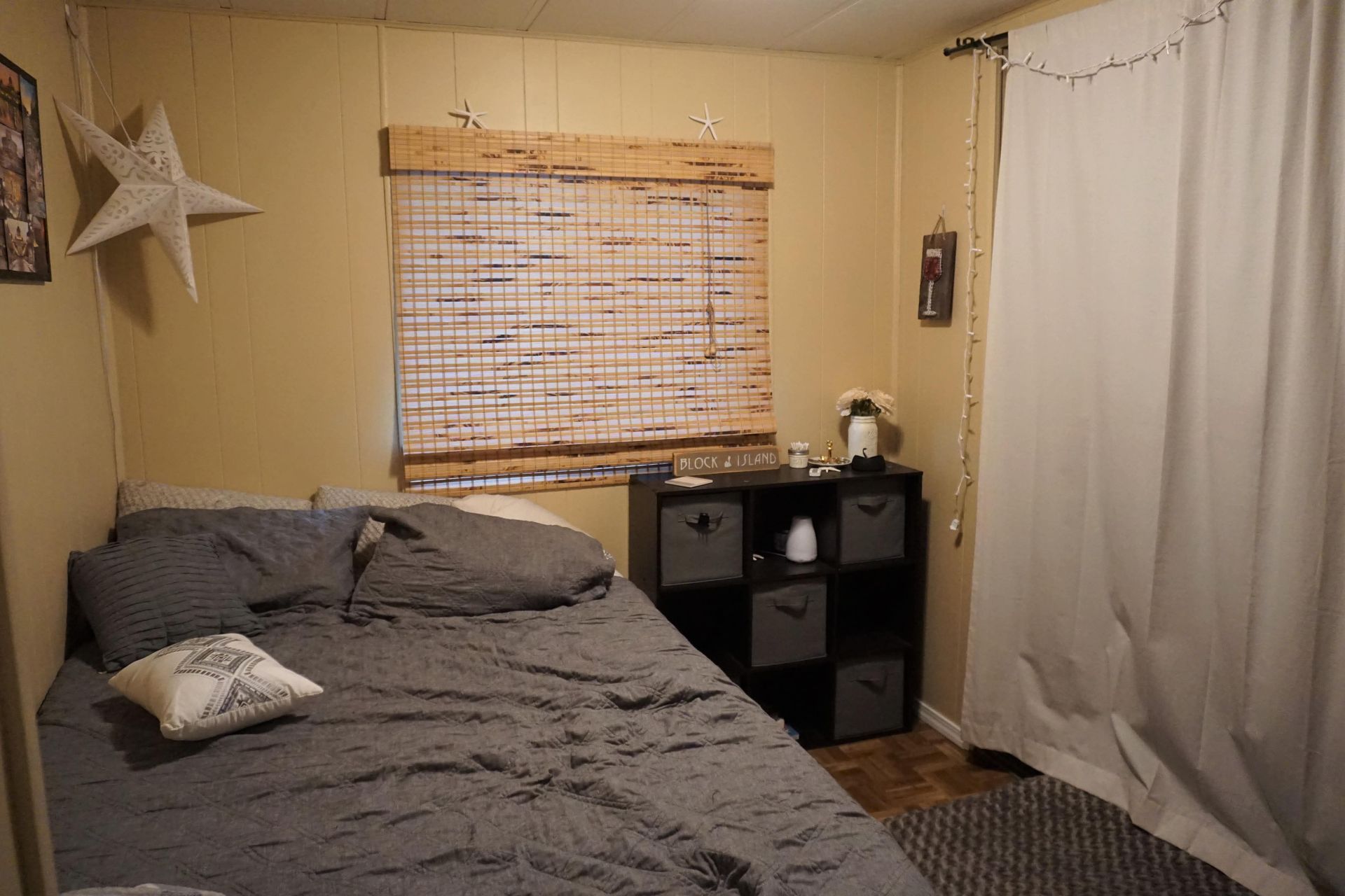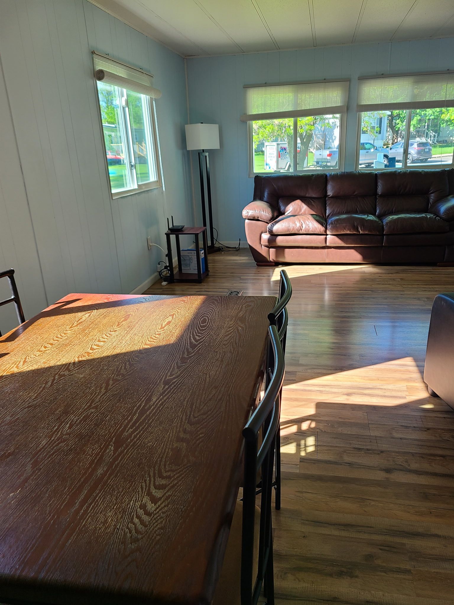This double-wide mobile home is very spacious and has 3 bedrooms and 2 bathrooms. The largest bedroom is an ensuite and has a large walk-in closet. The home features large windows throughout which provide a lot of natural light. The home was recently renovated and features a variety of paint colors throughout. Some of the furniture (desks, tables, dresser) will be included. There is an in-unit washer and dryer that will also come with the property.