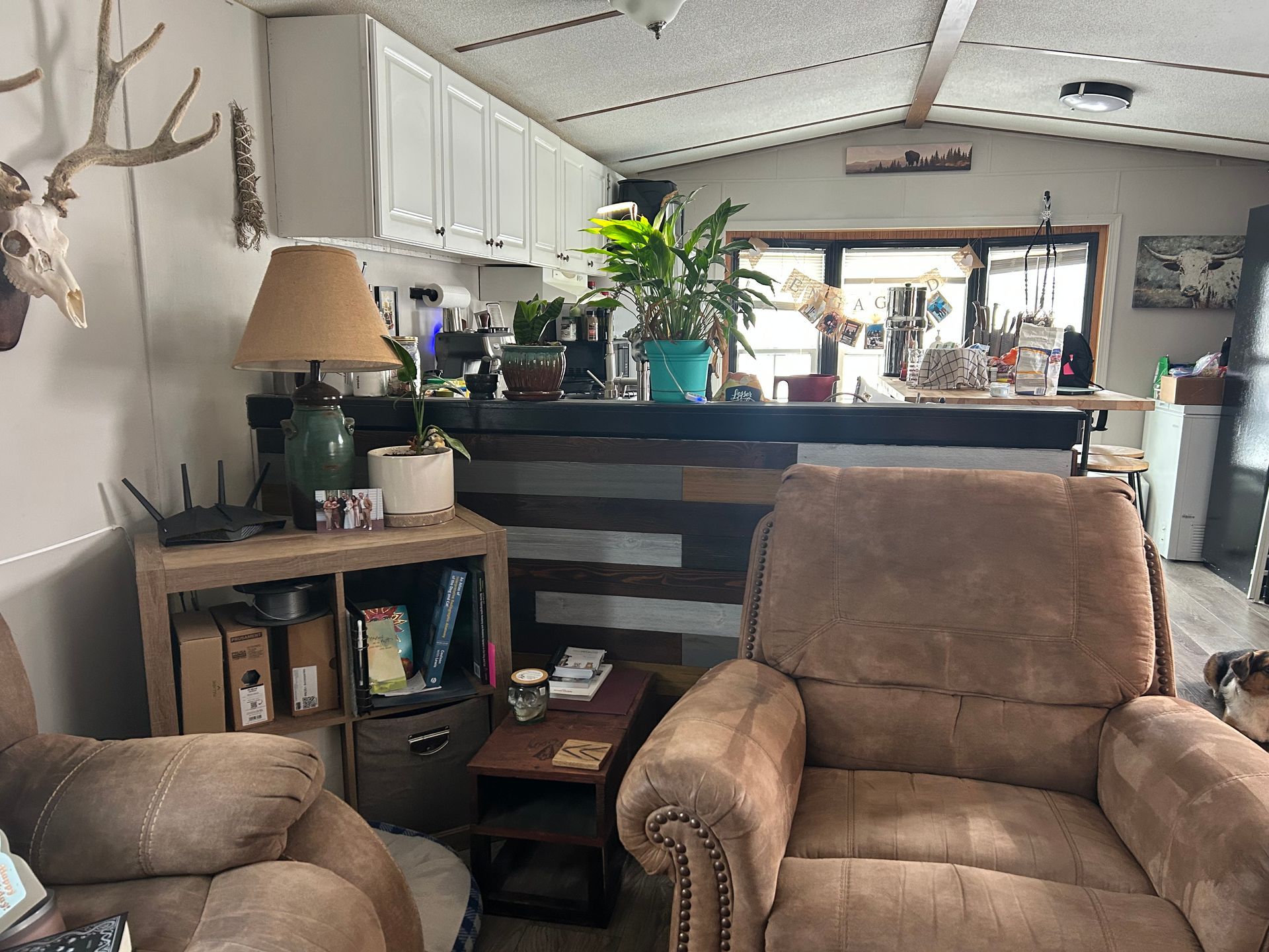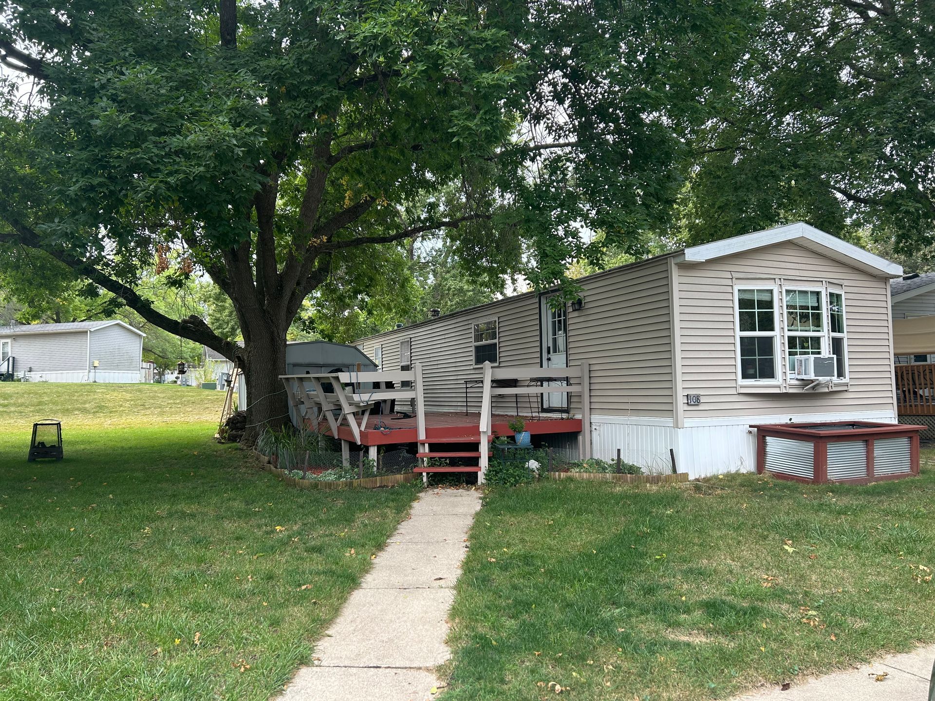 Trailer home with a relatively large yard and great neighbors! We are close to the dumpster but not right on the main street. We have a relatively large yard with a large tree. There is also a decent-sized storage shed and large deck. The deck was repainted in 2025. There are multiple flower beds and a raised flower/garden bed out front. New flooring was installed throughout the entire trailer in 2023 and all walls as well as the ceiling were repainted at that time as well. Brand new kitchen sink, 40-gallon water heater, and new heat tape installed in 2024. New washing machine installed 2025. Roof has had a new layer of tar put on every 3 years; due in 2026 (we will apply).